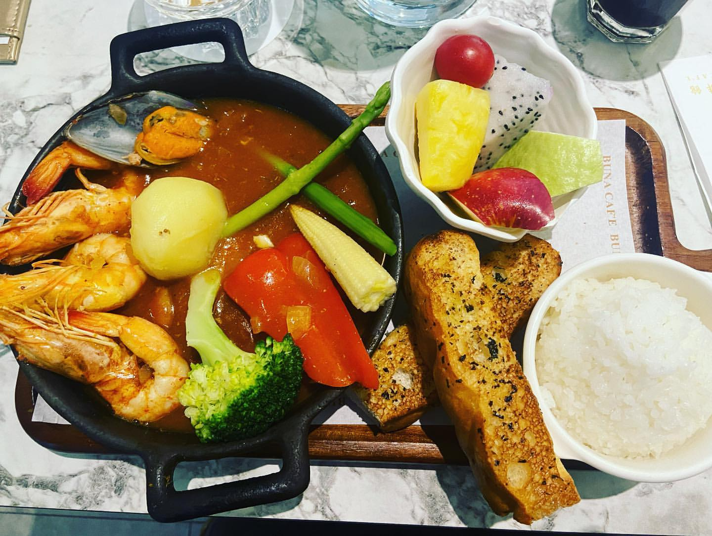It is a coffee shop with a luxurious and colorful interior. In addition to coffee, you can enjoy dishes such as pasta, stew, steak, and various desserts.